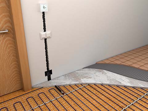Cronotermostato con pantalla táctil para suelo radiante, programable semanalmente.